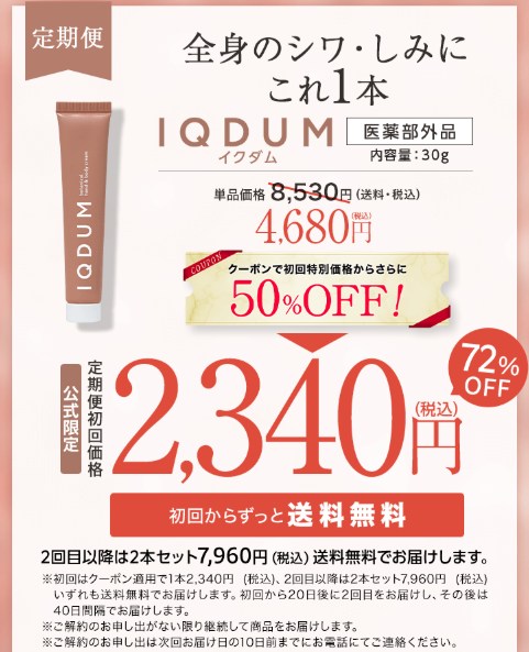 イクダムは公式サイトの定期コースかなりお得となっています!