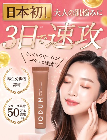 イクダム(IQDUM)は、シミ予防、シワ改善、保湿、肌荒れ防止などに特化したエイジングケアブランドです。
